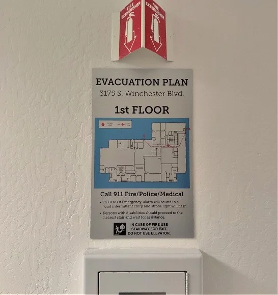 Informational signs provide people with information about the location of specific places. For example, these signs might include the name of a building or room or give directions to the nearest exit.